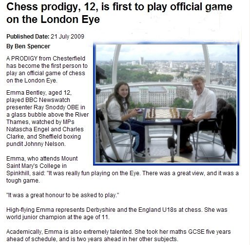 The full article contains 188 words and appears in Derbyshire Times newspaper. School attended updated. Winboard << Easy to use FREE PGN File Chess Board----------------------------------------------------------------------------------------------------------------------------------------------------------------------------- Emmajazz. Webset db 1999 18032008 thoughtsport.co.uk © . Truth Tefore Tact. |